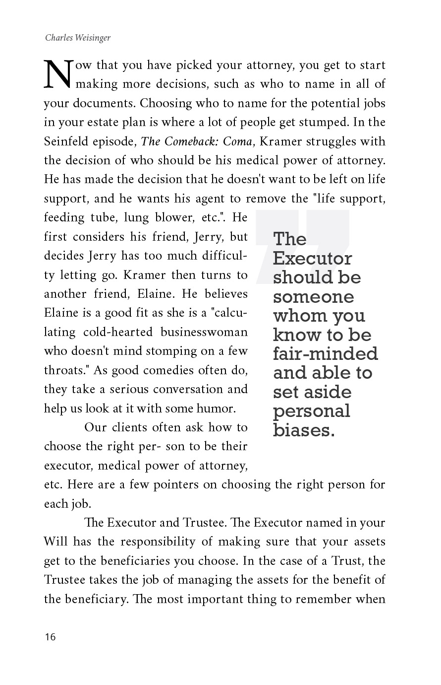 Deciding what happens to the people that depend on you is one of the most important steps in your estate plan. In this book we’ll help you realize that even though no one will do as good job as you, you need a plan for your children.