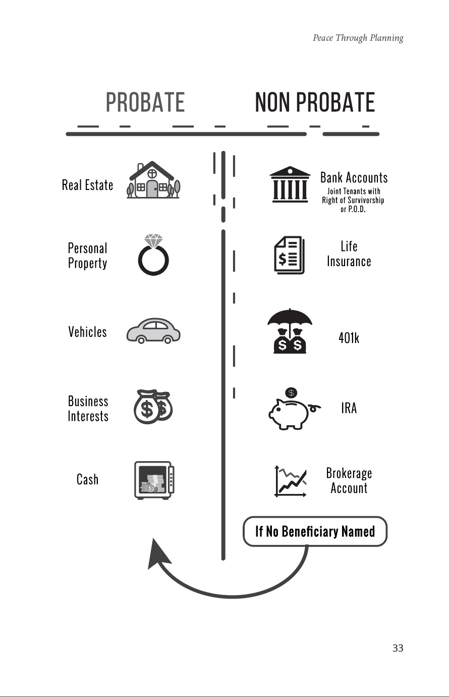 What is Probate? Do we have to go to court? Probate simply refers to the court managed process of settling an estate and distributing the assets to the intended beneficiaries. This book will outline Probate and the steps that can be taken to avoid it.